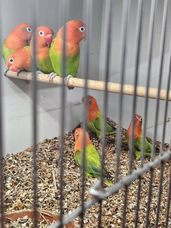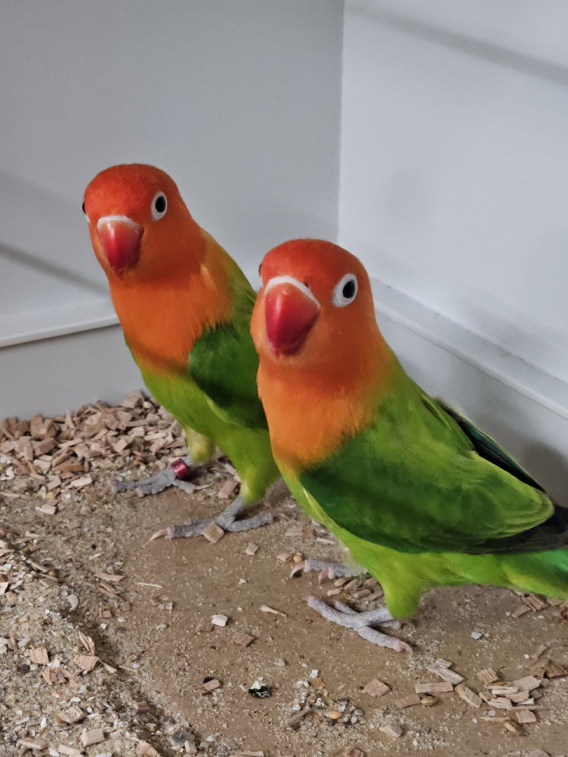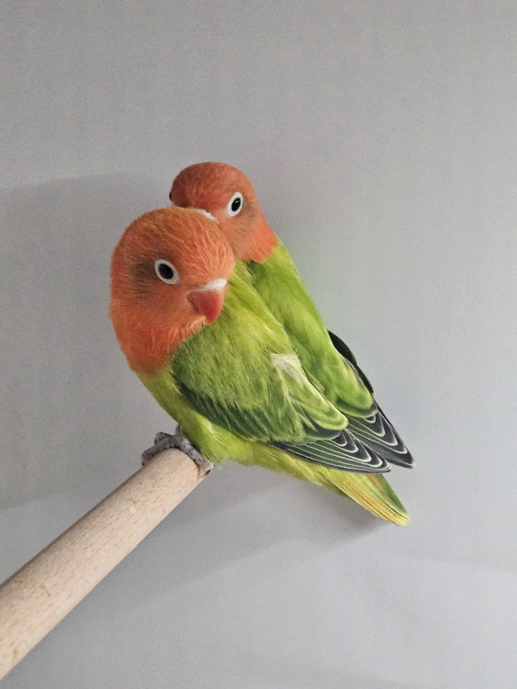 Die Pfirsichköpfchen sind nicht schwierig zu züchten. Die Zucht gelingt regelmässig. Als Brutkästen dienen Wellensittichnistkästen. Die Nester werden überwiegend mit fein zerfaserten Ästen und Zweigen ausgefüllt, welches vom Weibchen in das Nest gebracht wird. Ein Gelege besteht aus 4-6 Eiern, die Brutzeit beträgt ca. 22-23 Tage, Nestlingszeit ca. 6-7 Wochen und mit 8-9 Wochen sind sie selbständig.